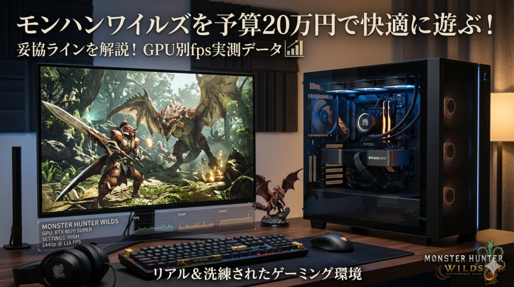 モンハンワイルズを予算20万円のゲーミングPCで快適に遊ぶ方法|GPU別fps実測データで妥協ラインを解説【2026年】