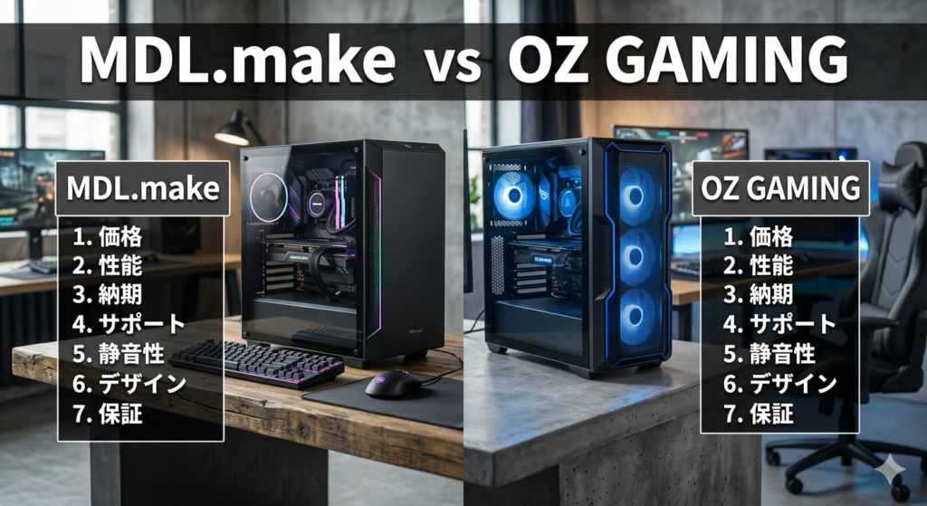 MDL.makeとOZ GAMINGどっちがいい?格安BTO 7項目で徹底比較【2026年4月】
