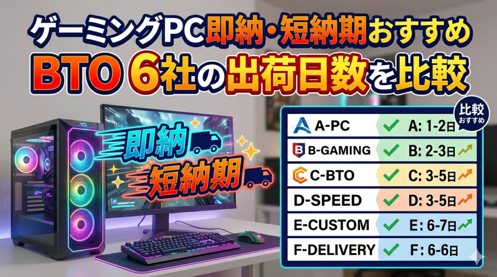 ゲーミングPC即納・短納期おすすめ|BTO 6社の出荷日数を比較【2026年】