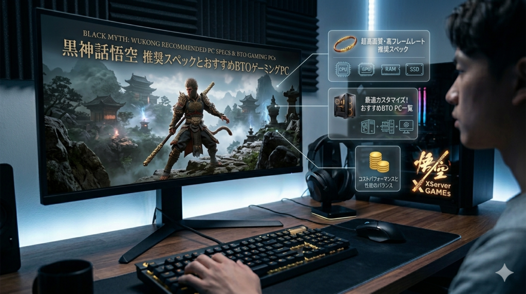 『黒神話:悟空(Black Myth: Wukong)』をPC版でプレイしたいけれど、どのくらいのスペックが必要で、どのBTOパソコンを選べばいいのかわからない——この記事では公式推奨スペックの読み解き方から、予算別のおすすめBTOゲーミングPCまで、購入判断に必要... -