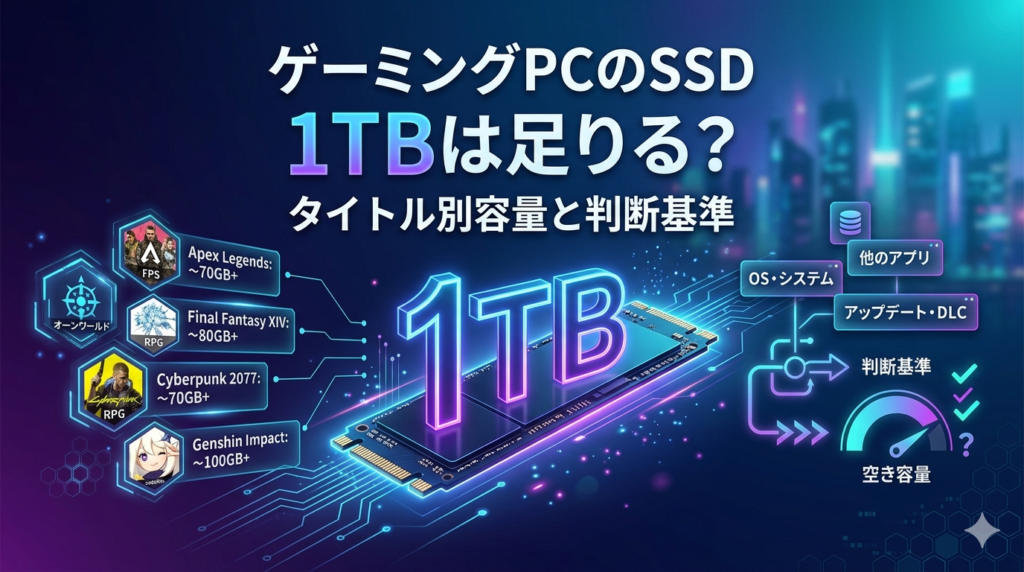 ゲーミングPCのSSD 1TBは足りる?タイトル別容量と判断基準