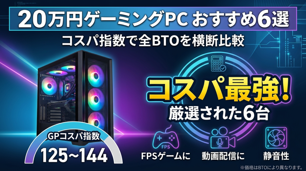 20万円ゲーミングPCおすすめ6選|GPコスパ指数で全BTO横断比較【2026年版】
