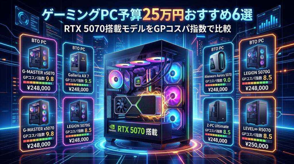 【2026年版】ゲーミングPC予算25万円おすすめ6選|RTX 5070搭載モデルをGPコスパ指数で比較