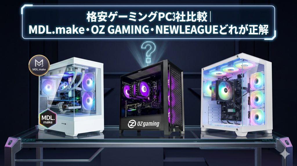 格安ゲーミングPC3社比較|MDL.make・OZ GAMING・NEWLEAGUEどれが正解?
